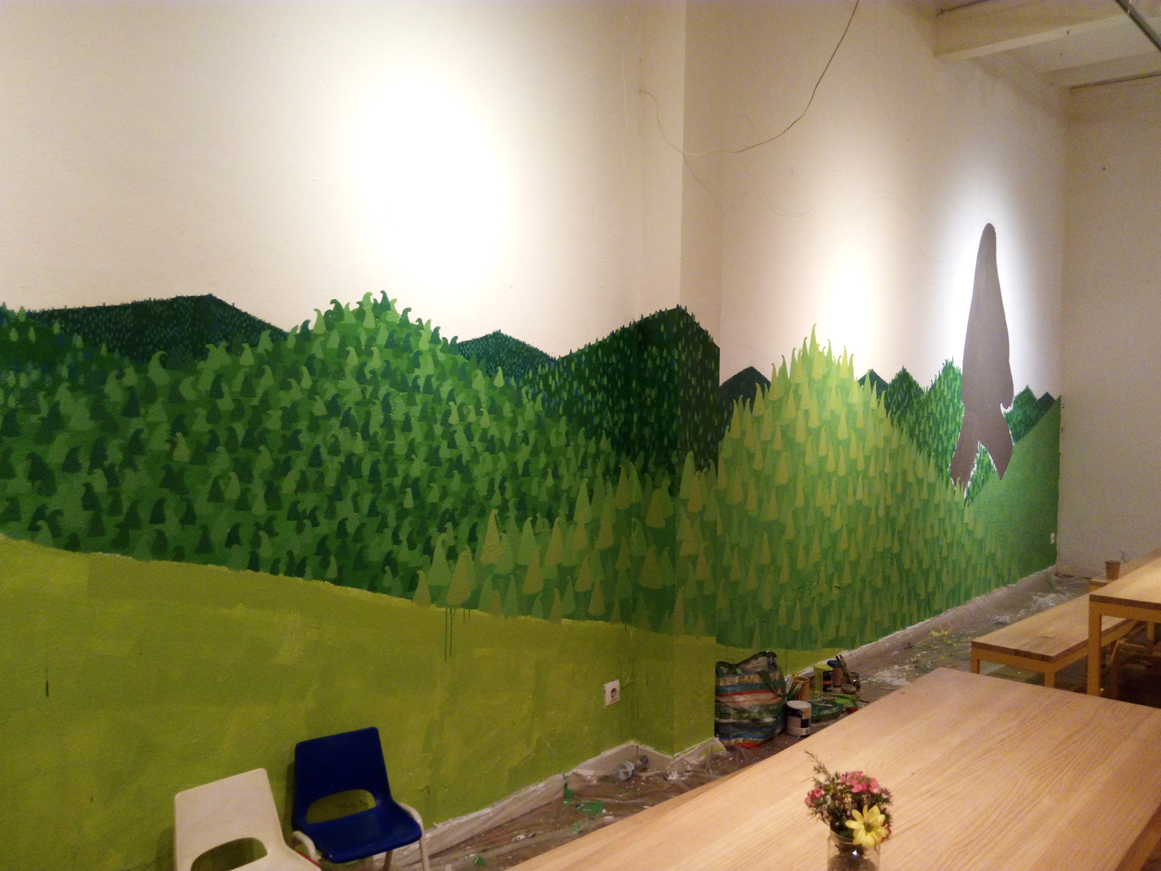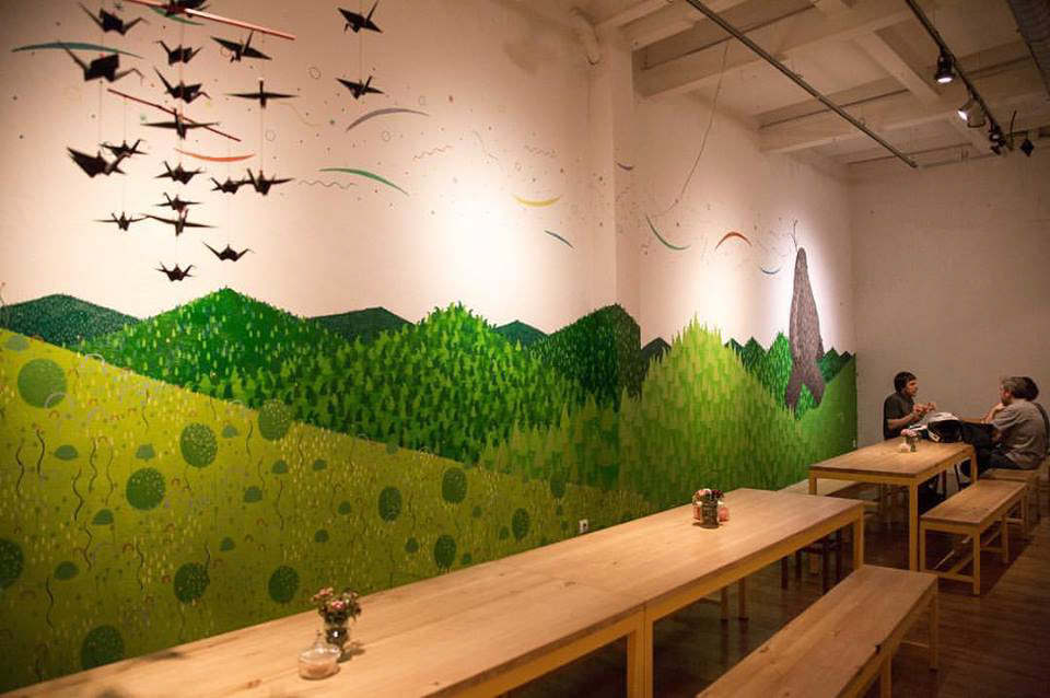 Mural realizado en la cafetería y galería